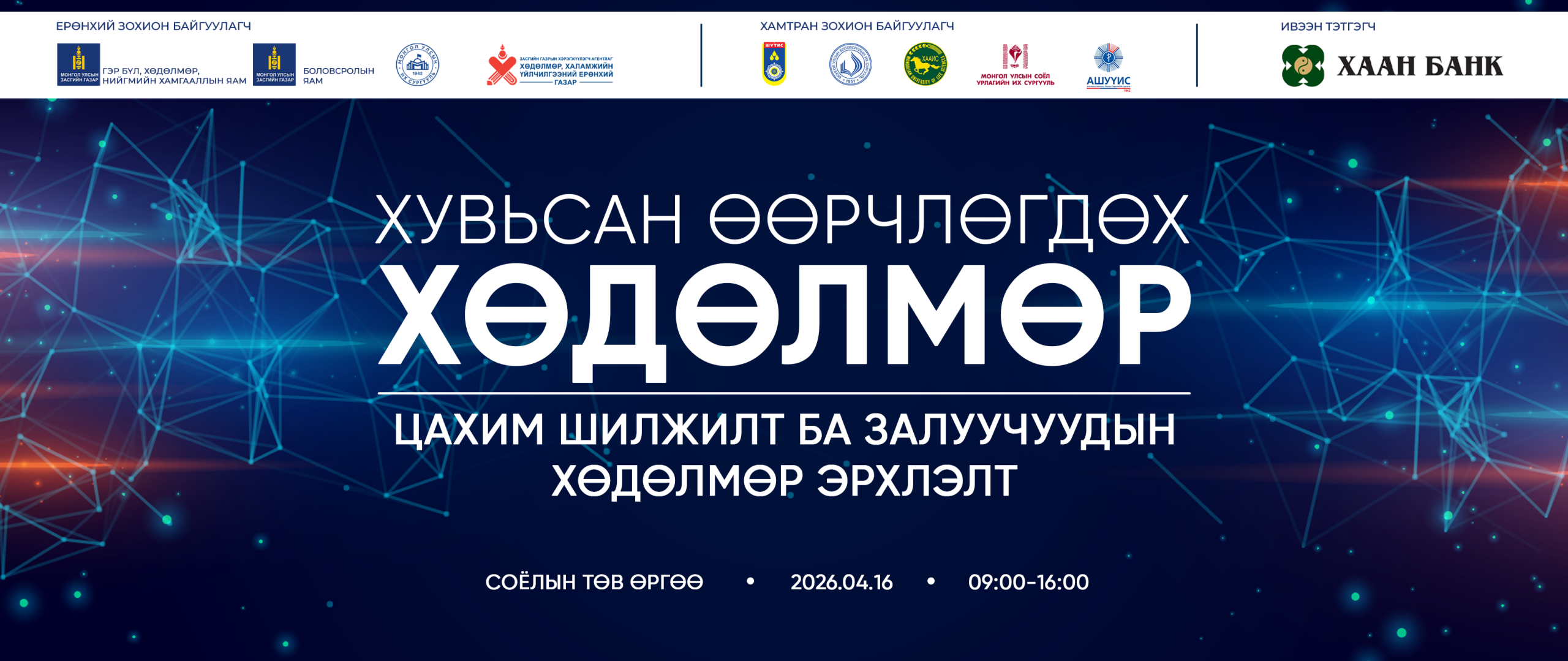 Техник технологийн хурдацтай хөгжил хөдөлмөрийн зах зээлд хэрхэн нөлөөлж буйг хэлэлцэх, залуучуудын ажил мэргэжлийн сонголтыг дэмжих зорилготой “Дижитал эриний хөдөлмөр эрхлэлтийн боломж” форум, хөдөлмөрийн яармаг 2026 оны 4 дүгээр сарын 16-ны өдөр Соёлын Төв Өргөөнд ...