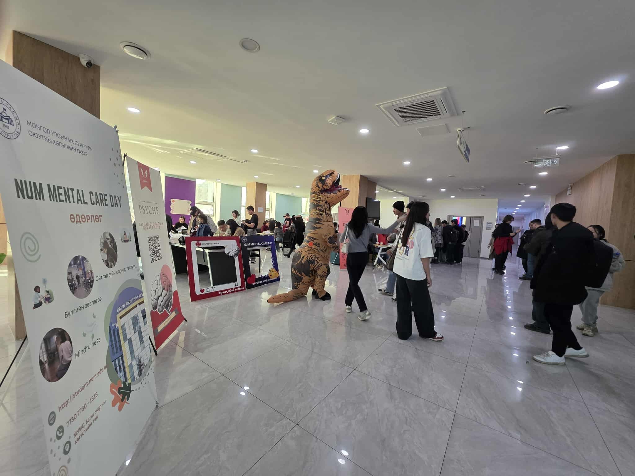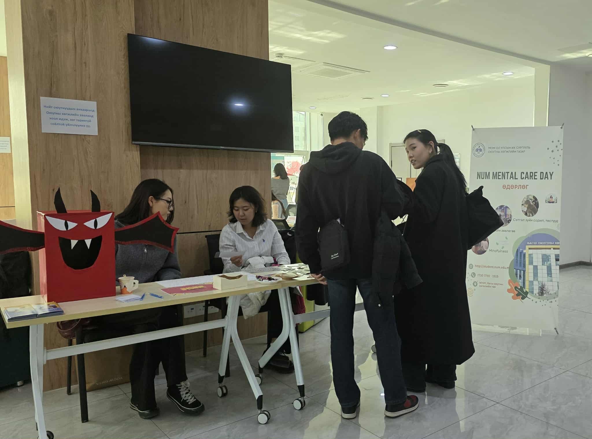 Дэлхийн Сэтгэцийн эрүүл мэндийн өдрийг тохиолдуулан МУИС-ийн Оюутны хөгжлийн газар болон Сэтгэл судлалын ангийн оюутнуудын Психия клуб хамтран МУИС-ийн оюутан суралцагчдын сэтгэл зүйн эрүүл мэндийг хадгалах, хамгаалах, тулгарсан бэрхшээл, асуудлыг даван туулахад нь туслах зорилгоор “NUM Mental Care Day-2025” өдөрлөгийг зохион байгууллаа.