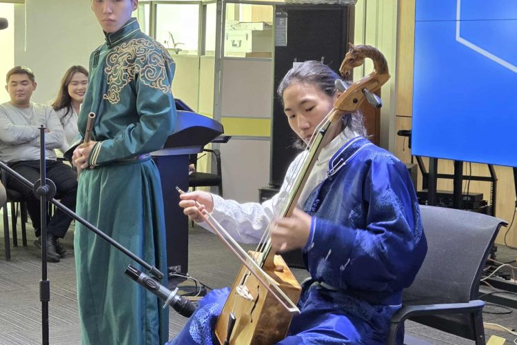 Мөн өдөрлөгийн үеэр “Хөгүлүн” клубийн авьяаслаг оюутнууд монгол үндэсний хөгжмөөр ая дууны мэндчилгээ хүргэв.