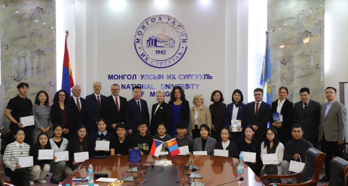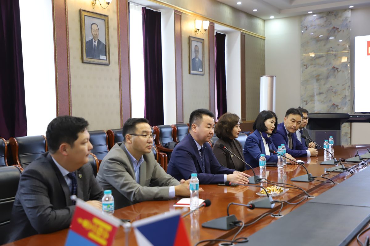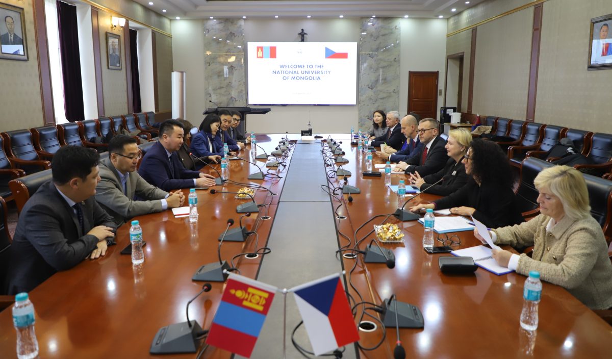 Сургалт, оюутны хөгжил эрхэлсэн проректор Д.Заяабаатар хүрэлцэн ирсэн өндөр хэмжээний зочдод талархлаа илэрхийлээд МУИС дээр явагдаж буй чех хэлний сургалтын талаар болон чехийн их дээд сургуулиудтай хэрэгжүүлж буй хамтын ажиллагааны талаар дэлгэрэнгүй мэдээлэл өглөө. МУИС нь 1992 оноос эхлэн улсдаа анх удаа чех хэлний сургалт явуулж ирсэн бөгөөд өнөөгийн байдлаар Ерөнхийлөгчийн илгээлт 2100 санаачилгын хүрээнд чех улсад суралцах оюутнуудын хэлний хичээлийг МУИС дээр түшиглэн мэргэжилтэн багш И. Петрусова, ЕСТ-ийн дэд проф. Д. Энхжаргал нар зааж буйг дурдлаа. Проректор Д.Заяабаатар үргэлжлүүлэн цаашид МУИС-д чех хэлийг сонгон суралцах оюутны тоог тэтгэлэгт хөтөлбөр хэрэгжүүлэх замаар нэмэгдүүлэх сонирхолтой буйгаа илэрхийллээ. Түүнчлэн Карлын их сургууль, Мазарикийн их сургуулиудтай монгол судлалын чиглэлээр олон жилийн турш идэвхтэй хамтран ажиллаж буйг онцлоод иж бүрэн сургалт, судалгаа явуулдаг их сургуулийн хувьд МУИС нь цаашид чехийн их дээд сургуулиудтай ирээдүйд олон талт хамтын ажиллагааг эрчим хүч, цөмийн энерги, сэргээгдэх эрчим хүч, геологи, мэдээллийн технологи, инженерчлэлийн шинэ талбаруудад хамтын ажиллагааг баяжуулан ажиллах бүрэн боломжтойг хэллээ.