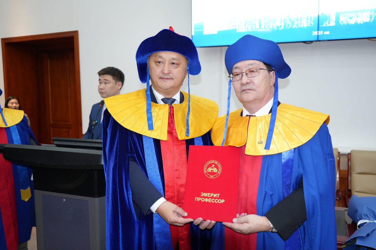 МУИС-ийн “Эмерит профессор” цолыг профессор, дэд профессор цолтой, тус сургуульд 20-оос доошгүй жил профессорын албан тушаалд ажилласан, шинжлэх ухаан, боловсролыг хөгжүүлэх үйлсэд дорвитой хувь нэмэр оруулсан эрдэмтэнд олгодог.