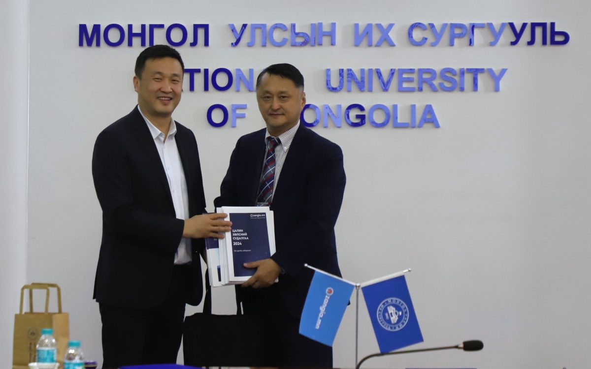 Уулзалтын үеэр “Зангиа портал” ХХК нь 2018 оноос хойш эдийн засгийн голлох салбар бүрээр нарийвчилсан цалин, хөлсний судалгааг жил бүр боловсруулан гаргаж ирсэн уламжлалынхаа хүрээнд 2023, 2024 оны “Ажил олгогчдын цалин, хөлсний тайлан”-г МУИС-ийн номын санд хандивлалаа.