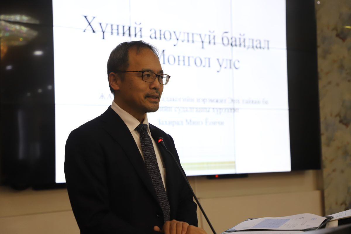 Лекцийн үеэр ноён Минэ Ёоичи хүний аюулгүй байдлын ойлголт орчин цагийн олон улсын бодлого, хөгжлийн чиг хандлагад хэрхэн чухал байр суурь эзэлж буйг тайлбарлаж, дэлхийн улс орнуудад тулгарч буй асуудлуудыг Монголын нөхцөл байдалтай харьцуулсан судалгааны жишээн дээр үндэслэн танилцуулав.