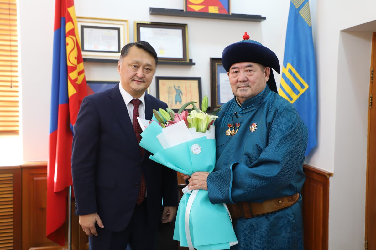 МУИС-ийн удирдлагууд Хөдөлмөрийн баатар цол хүртсэн МУИС-ийн профессор С.Дуламд хүндэтгэл үзүүлэн хүлээн авч уулзлаа.