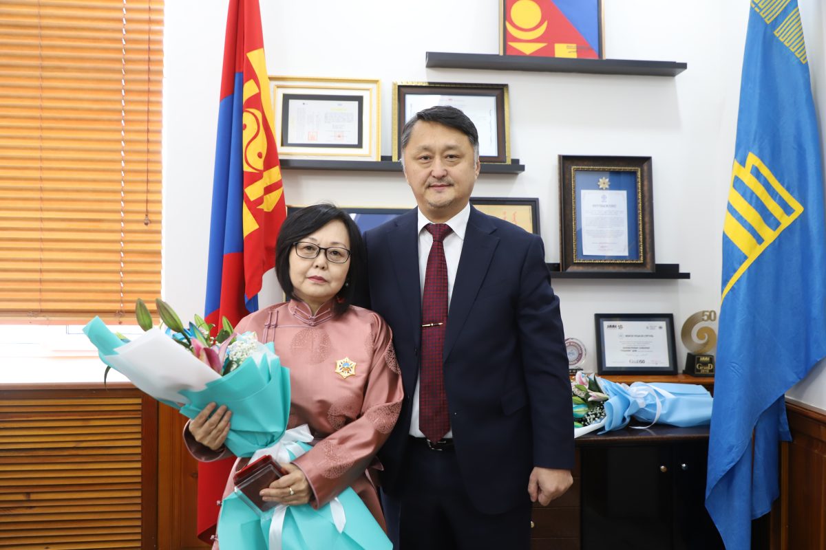Монгол Улсын Ерөнхийлөгчийн зарлигаар МУИС-ийн Бизнесийн сургуулийн багш С.Алтанцоожийг Алтангадас одонгоор шагнасныг гардуулан өглөө.