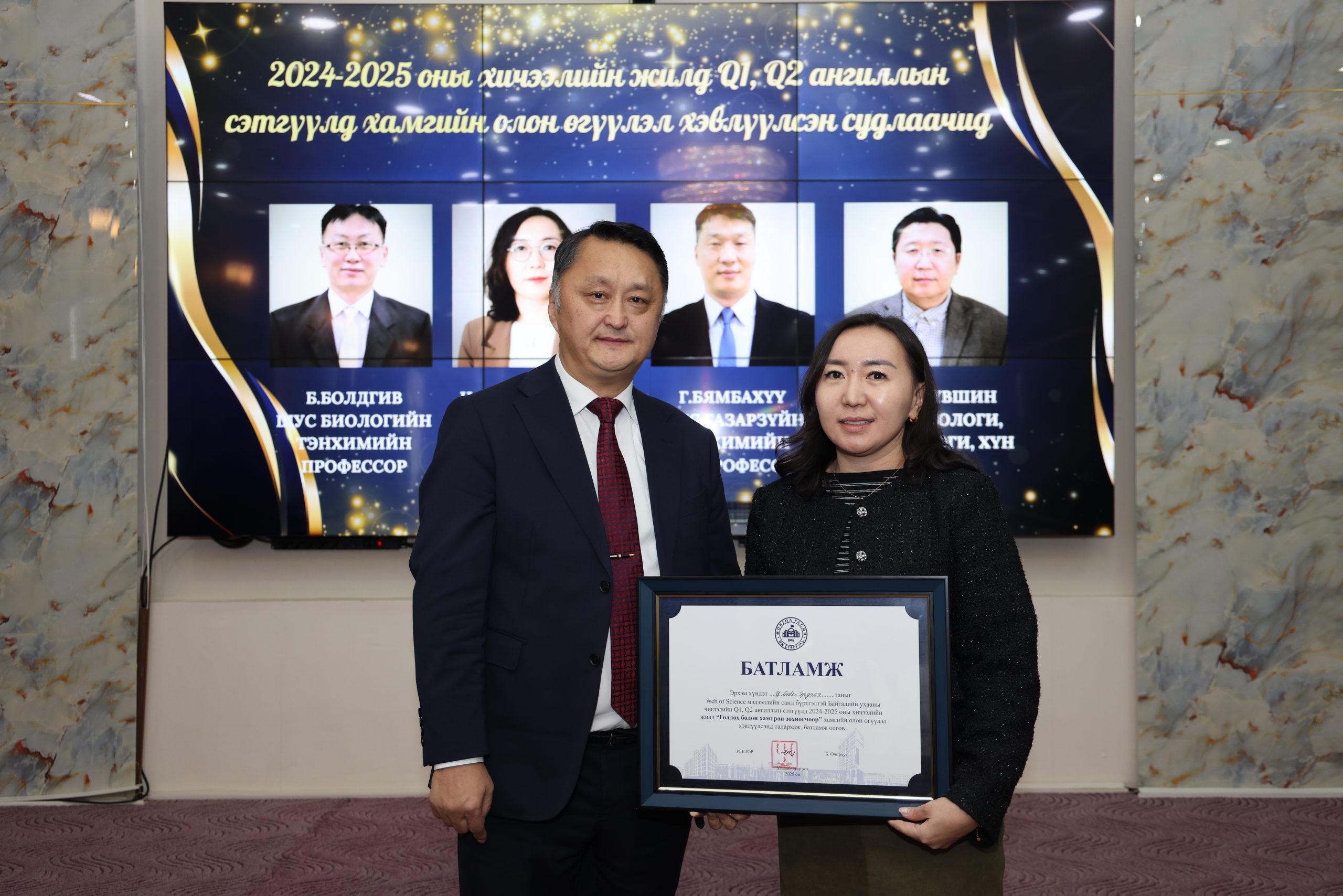 Web of Science мэдээллийн санд бүртгэлтэй Q1, Q2 ангиллын сэтгүүлд голлох болон хамтран зохиогчоор хамгийн олон бүтээл хэвлүүлсэн судлаачид
