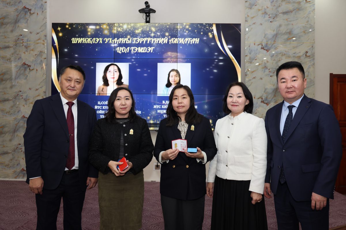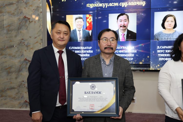 Мөн Засгийн газрын шагнал “Шинжлэх ухааны тэргүүний ажилтан” цол тэмдгээр Хүрээлэн буй орчин, ойн инженерчлэлийн тэнхимийн профессор Ц.Соёл-Эрдэнэ, Хими, биологийн инженерчлэлийн тэнхимийн дэд профессор Б.Даваапүрэв нарыг шагнасныг гардуулан өглөө.