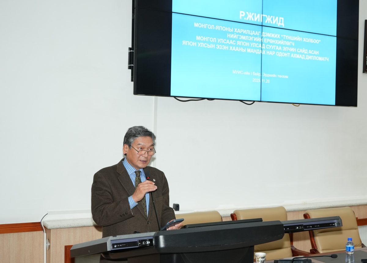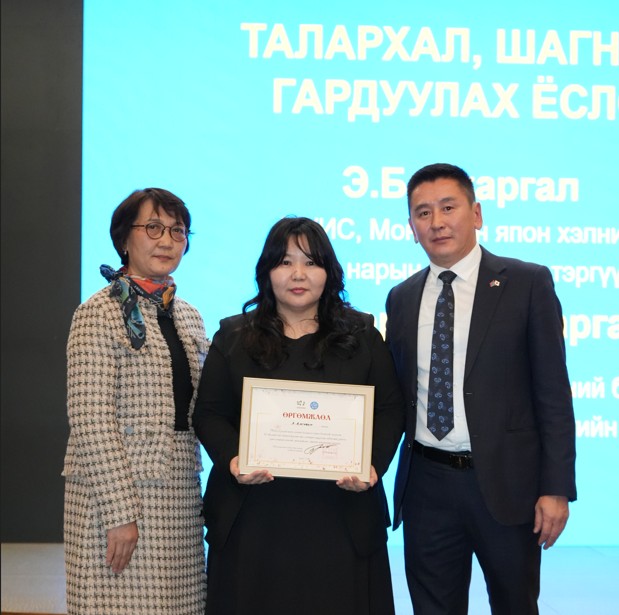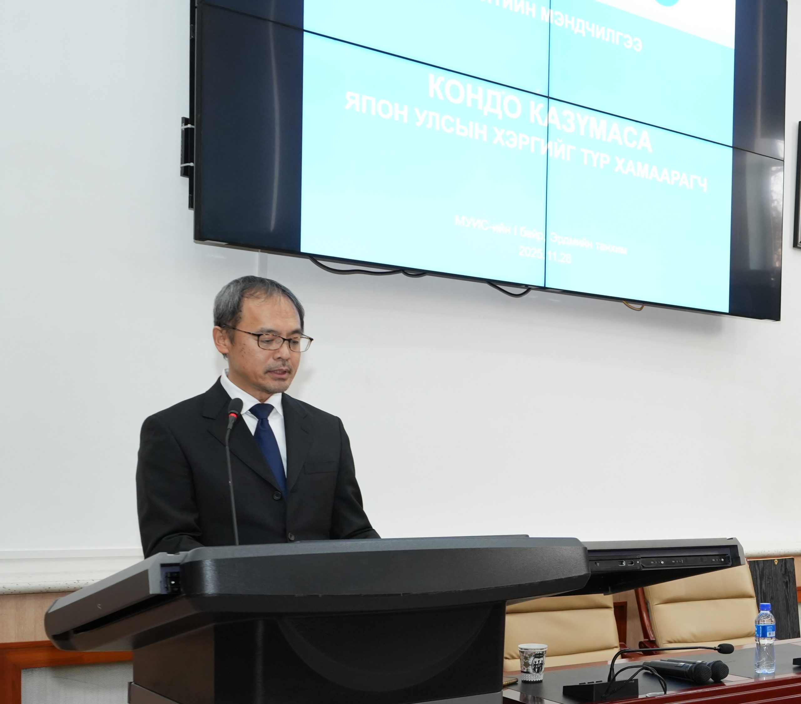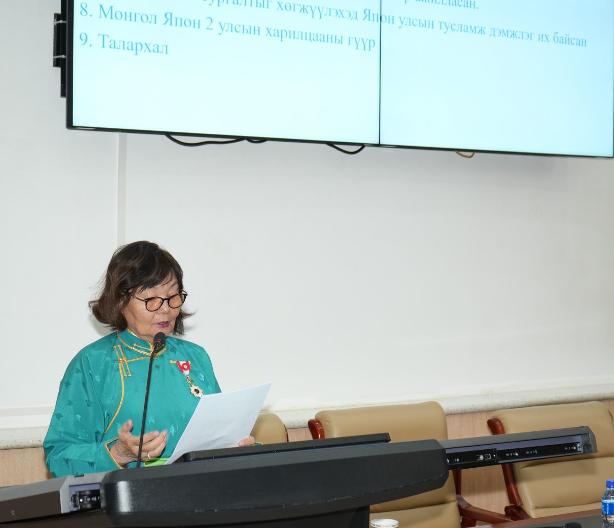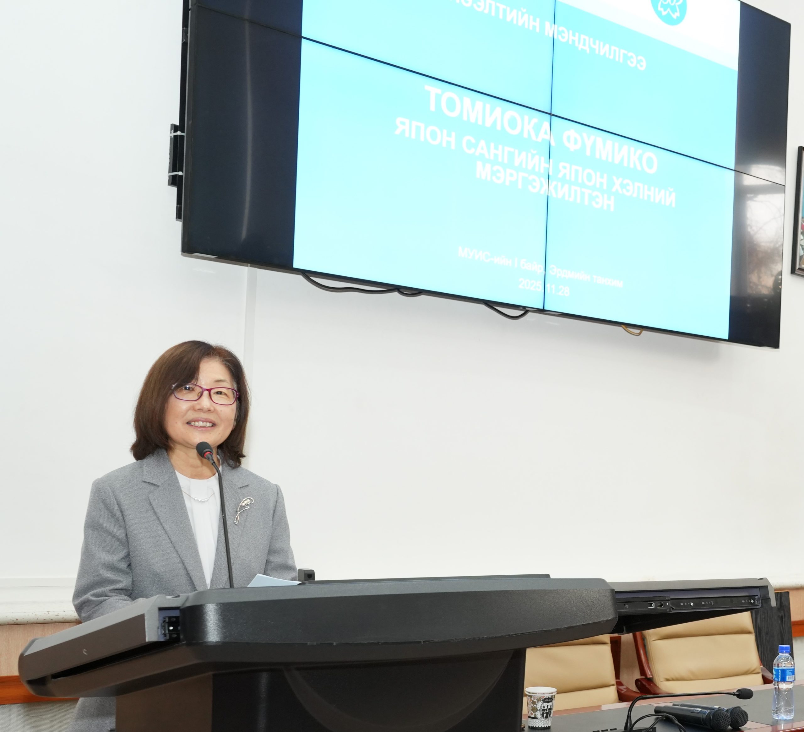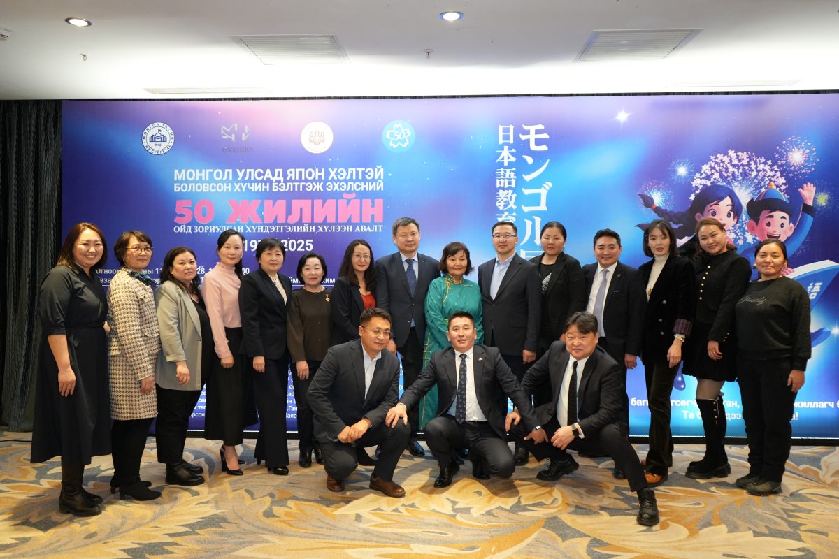 Япон хэлний боловсролын салбарын түүхэн ололт, амжилтыг тэмдэглэх үйл ажиллагааны хүрээнд “Монгол улсын хөгжил, Монгол-Японы харилцаанд МУИС-ийн төгсөгчдийн оруулсан хувь нэмэр” сэдэвт хүндэтгэлийн хурал 2025 оны 11 сарын 28-ны өдөр МУИС-ийн түүхт Эрдмийн танхимд ёслол төгөлдөр зохион байгуулагдлаа. Уг арга хэмжээг МУИС-ийн ШУС, ХУС-ын Ази судлалын тэнхим, Монголын япон хэлний багш нарын холбоо зохион байгуулж, Япон улсын Элчин сайдын яам дэмжигч байгууллагаар оролцохын зэрэгцээ үе үеийн багш нар, төгсөгчид, оюутнууд, хамтран ажиллагч байгууллагын төлөөлөл оролцлоо. Хурлыг Ази судлалын тэнхимийн дэд профессор Ц.Дэлгэрэхцэцэг хөтлөн явуулж, 50 жилийн ойг тэмдэглэн өнгөрүүлэх үйл ажиллагааны зорилго, ач холбогдлыг дурдасны дараа хүндэт зочдыг танилцууллаа.