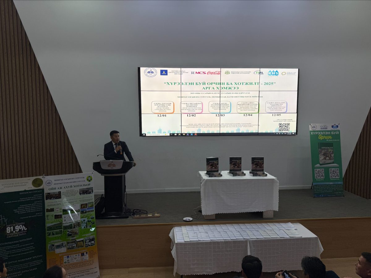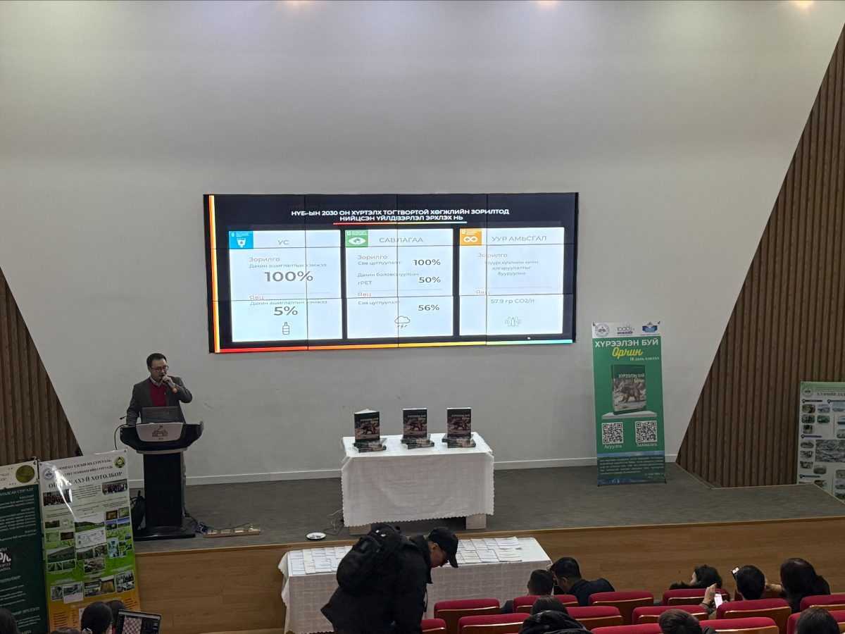 “Хүрээлэн буй орчин бах хотжилт- 2025” арга хэмжээг нээж, МУИС-ийн Инженер, Технологийн Сургуулийн захирал Ч.Сономдагва, МУИС-ийн Сургалт, оюутны хөгжил эрхэлсэн проректор Д.Заяабаатар, Засгийн газрын хэрэгжүүлэгч агентлаг Ойн газрын дарга Б.Оюунсанаа нар үг хэллээ.