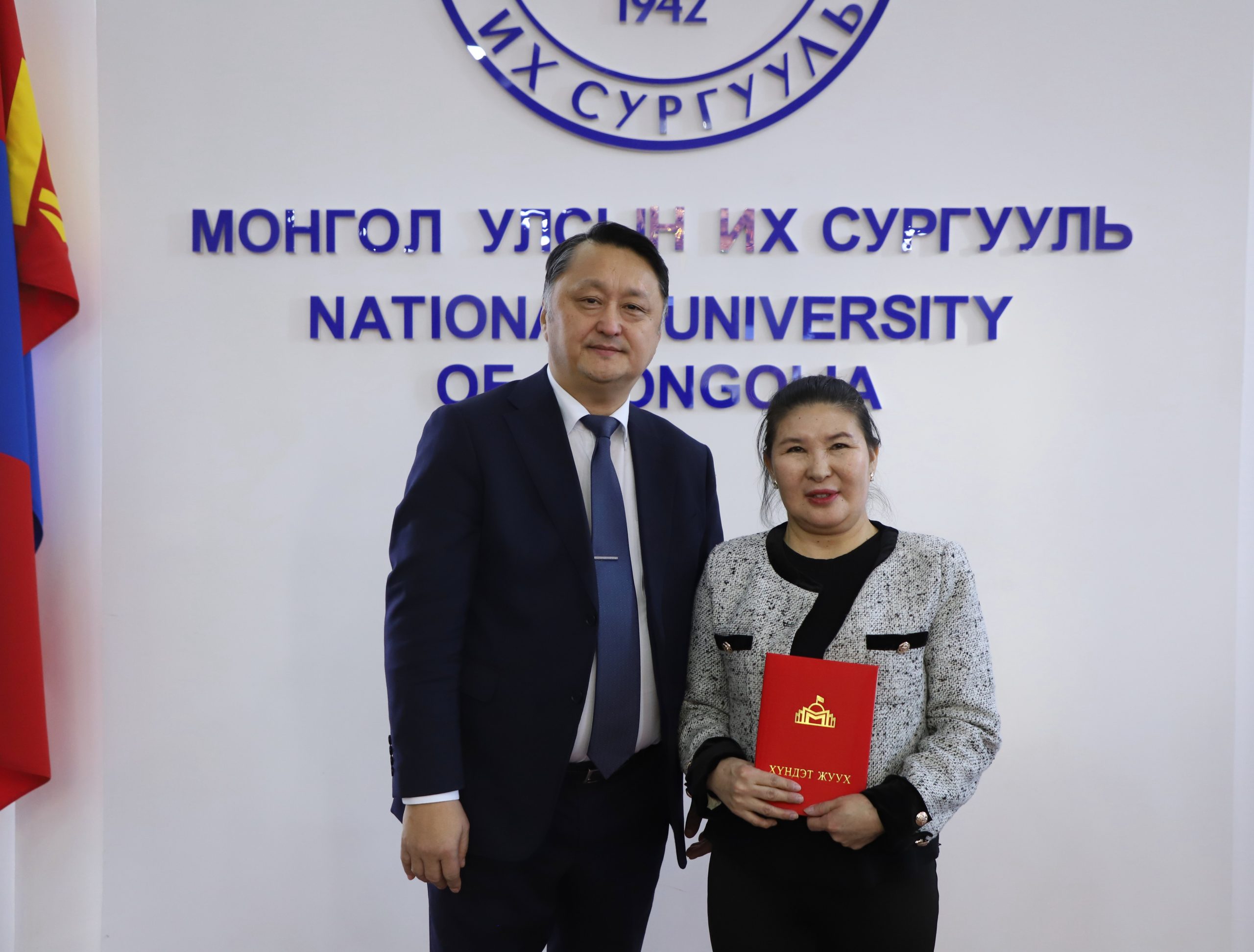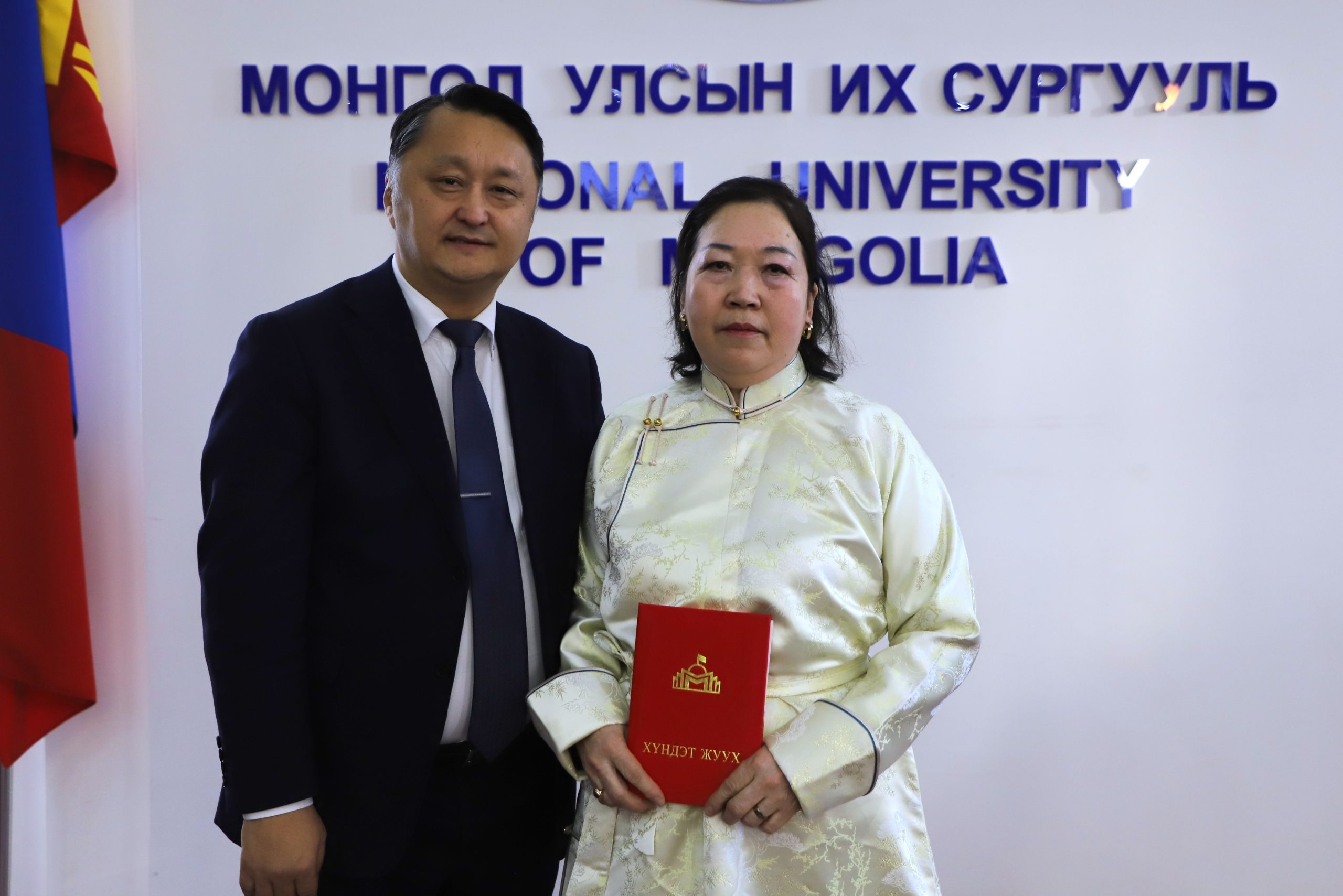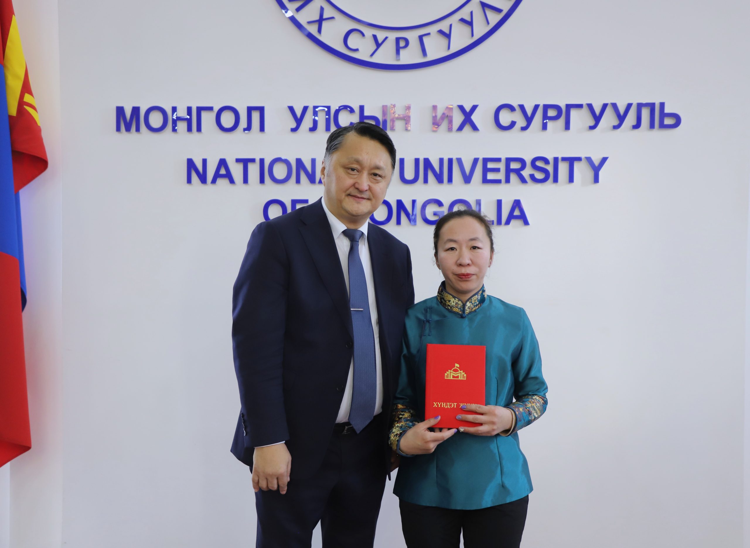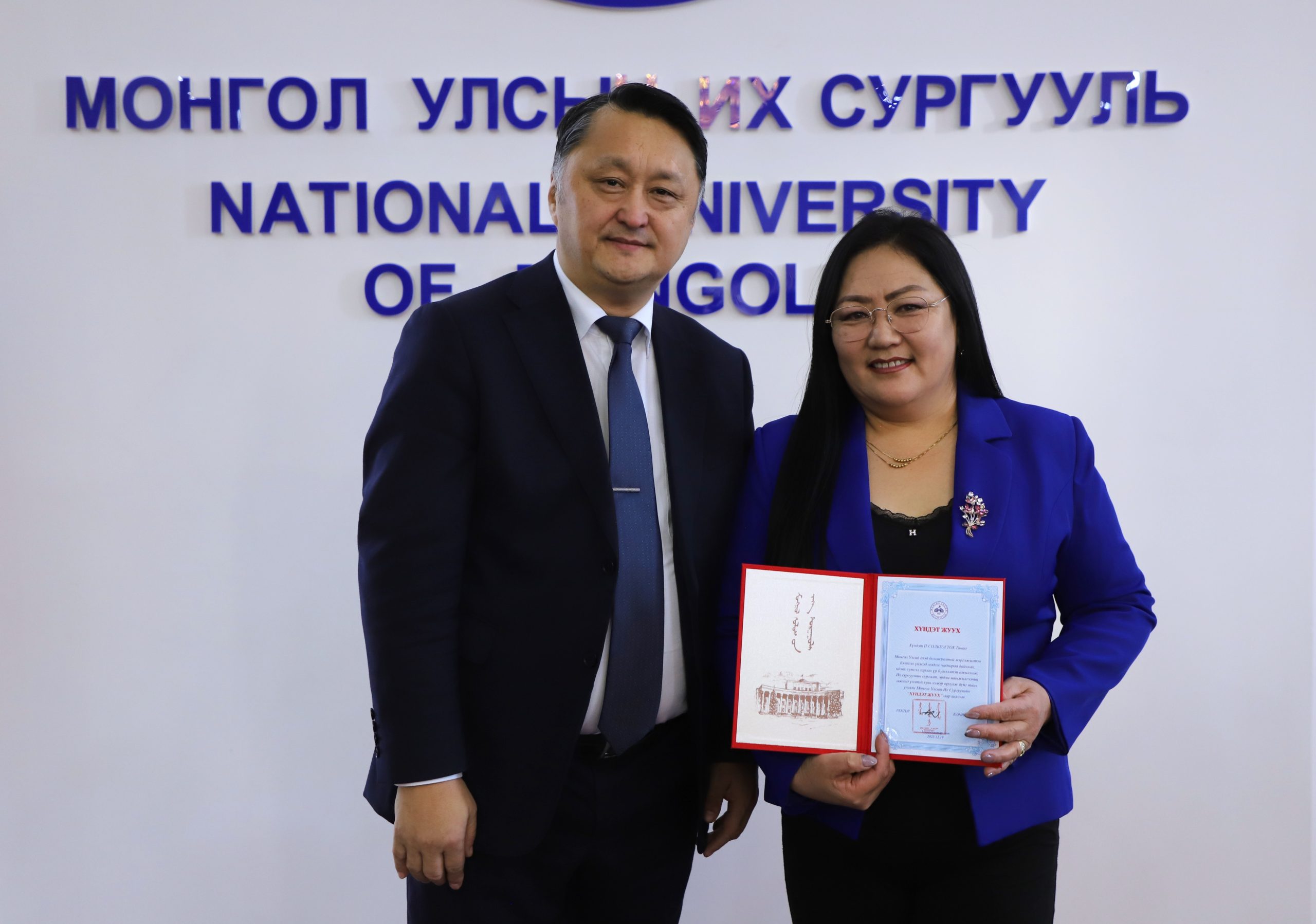МУИС-ийн ректор, профессор Б.Очирхуяг Монгол Улс, БНХАУ-ын боловсрол, шинжлэх ухаан, соёлын харилцааны гүүр болж багш, суралцагчдын хөгжлийг дэмжихэд чиглэсэн олон төрлийн хөтөлбөр, тэтгэлэг, уралдаан тэмцээн тогтмол зохион байгуулж, МУИС-ийн сургалтын материаллаг баазыг бэхжүүлэхэд олон жилийн турш бодит хувь нэмэр оруулсан МУИС-ийн Күнзийн инситутын Сургалтын албаны дарга Лан Ченг Шиаог МУИС-ийн Хүндэт жуухаар шагналаа.