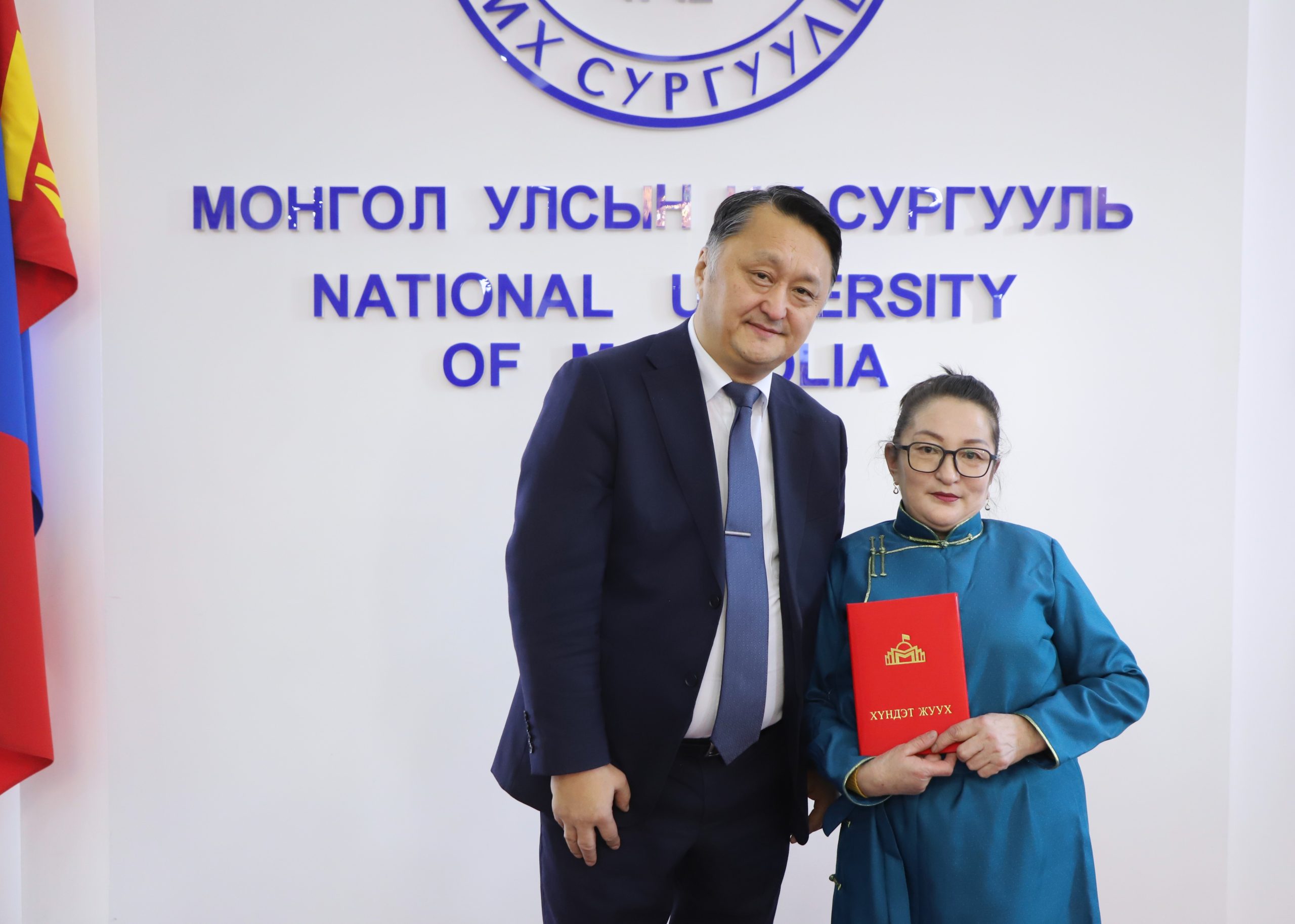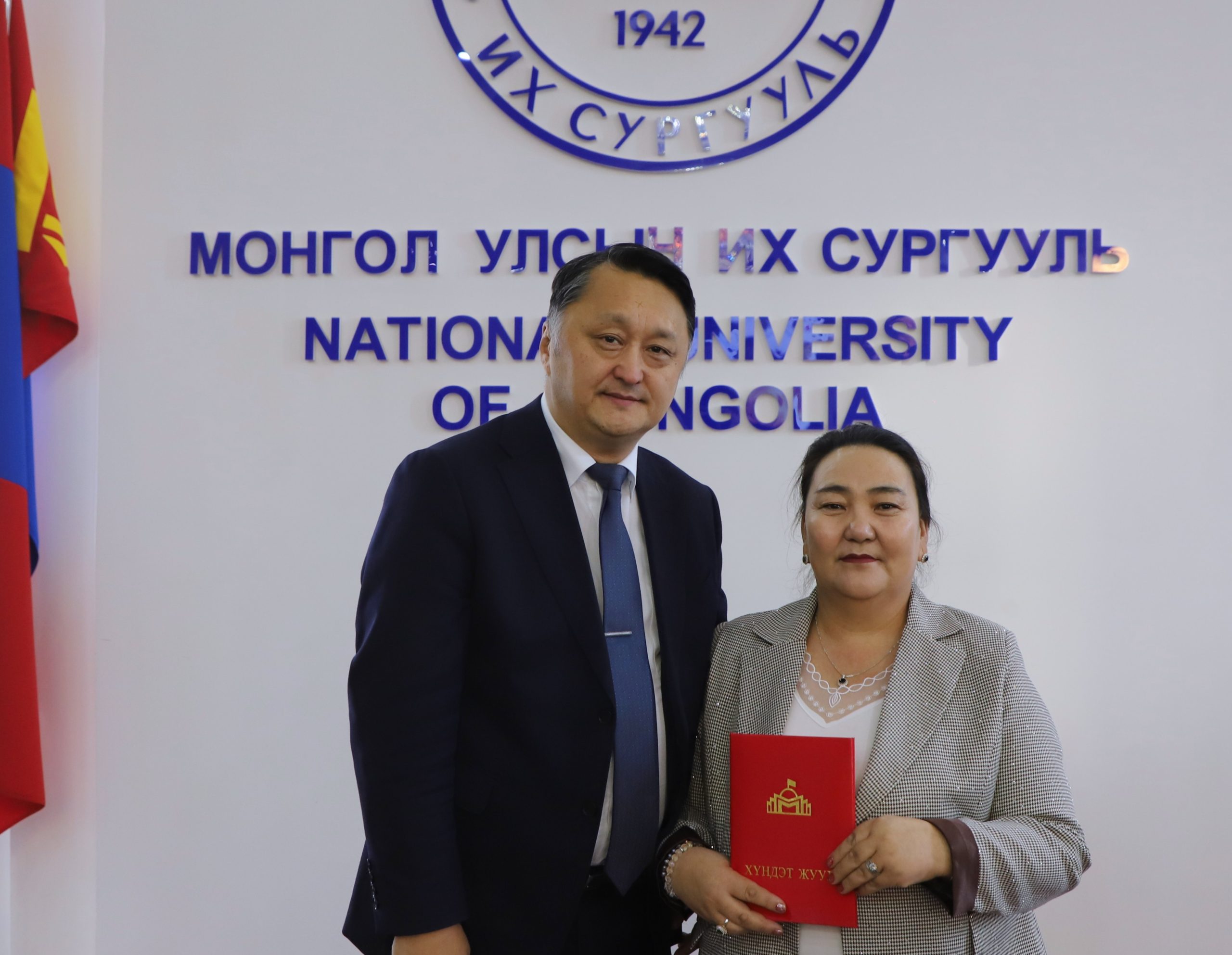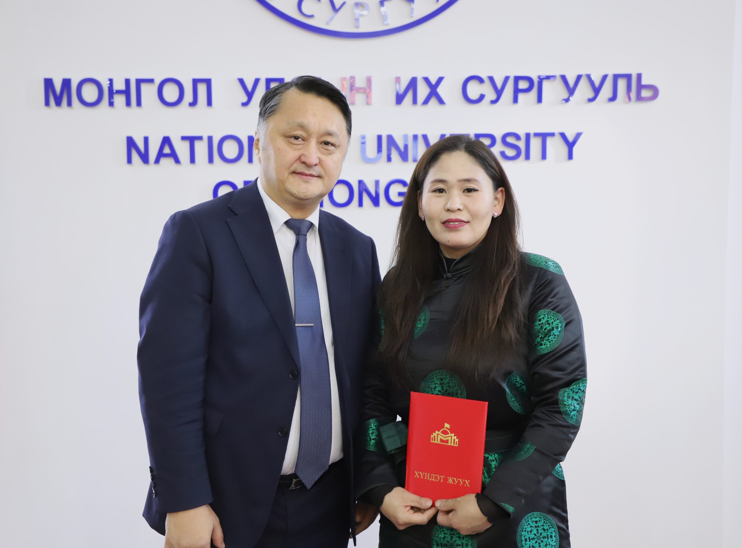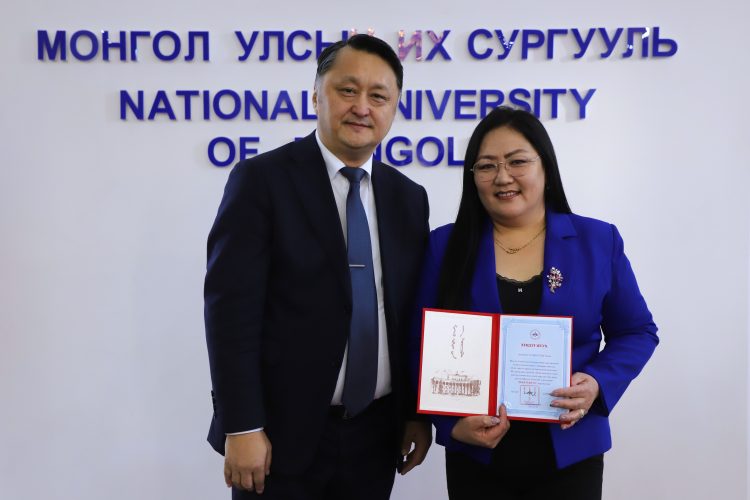 МУИС-ийн ректор, профессор Б.Очирхуяг Монгол Улс, БНХАУ-ын боловсрол, шинжлэх ухаан, соёлын харилцааны гүүр болж багш, суралцагчдын хөгжлийг дэмжихэд чиглэсэн олон төрлийн хөтөлбөр, тэтгэлэг, уралдаан тэмцээн тогтмол зохион байгуулж, МУИС-ийн сургалтын материаллаг баазыг бэхжүүлэхэд олон жилийн турш бодит хувь нэмэр оруулсан МУИС-ийн Күнзийн инситутын Сургалтын албаны дарга Лан Ченг Шиаог МУИС-ийн Хүндэт жуухаар шагналаа.