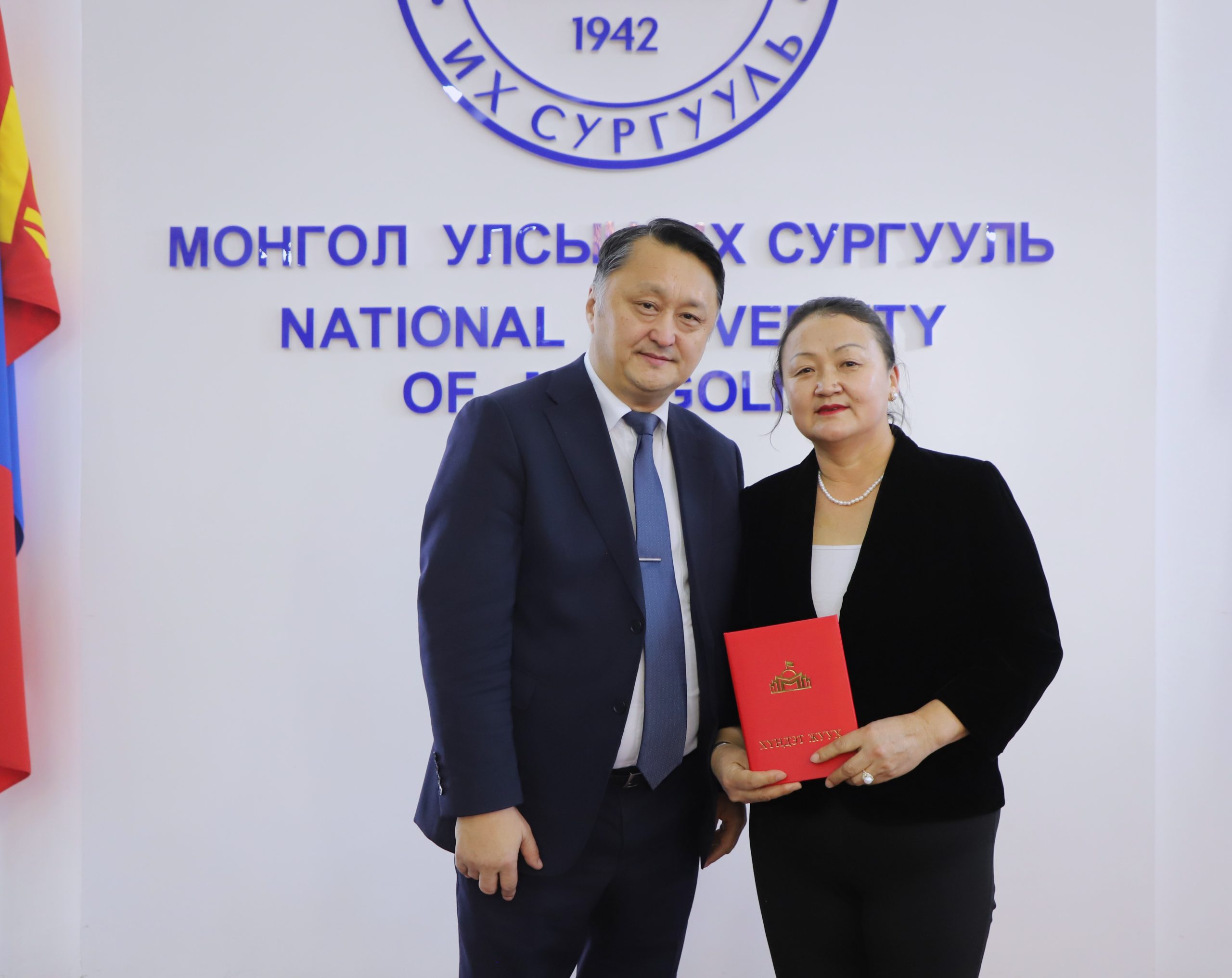 Мөн эрхэлсэн ажилдаа идэвх зүтгэл гарган үр бүтээлтэй ажилласан Хангамж, үйлчилгээний газрын үйлчилгээний ажилтнуудыг МУИС-ийн Хүндэт жуух, МУИС-ийн Баярын бичгээр шагнав.