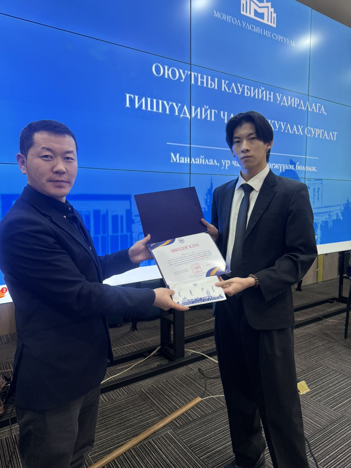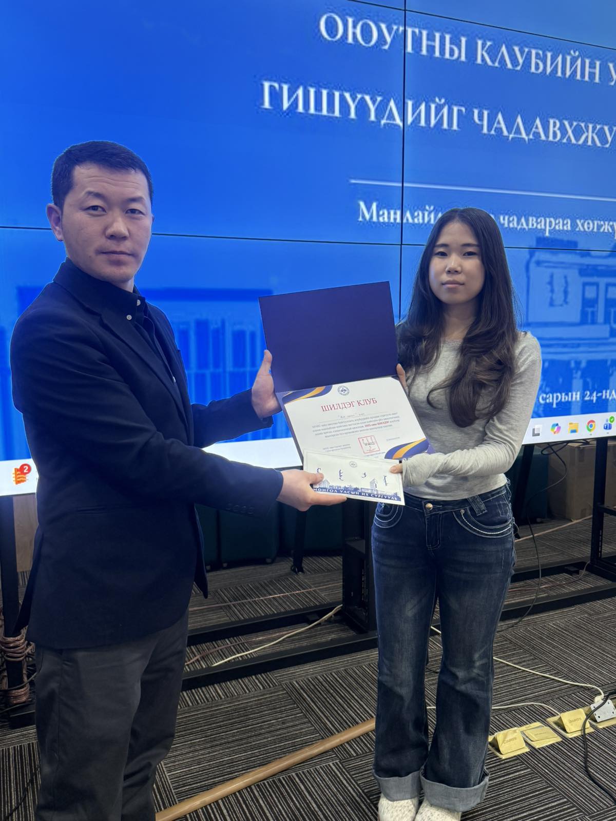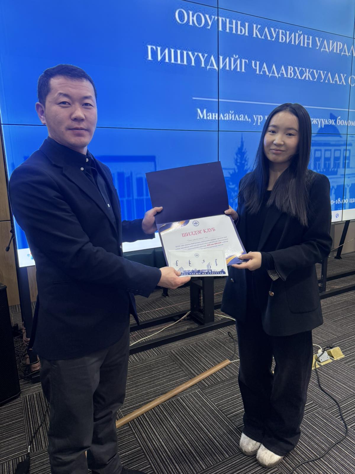 Шалгарсан клубүүдэд МУИС-ийн Оюутны хөгжлийн газрын дарга Б.Цэцэнцолмон, Ахлах мэргэжилтэн Л.Чинзориг нар баяр хүргэж Өргөмжлөл гардуулав.