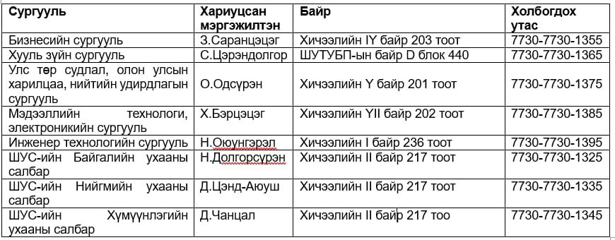 “Хичээл сонголт, баталгаажуулалт” холбоотой зөвлөгөөг дараах хаягаар авна уу.