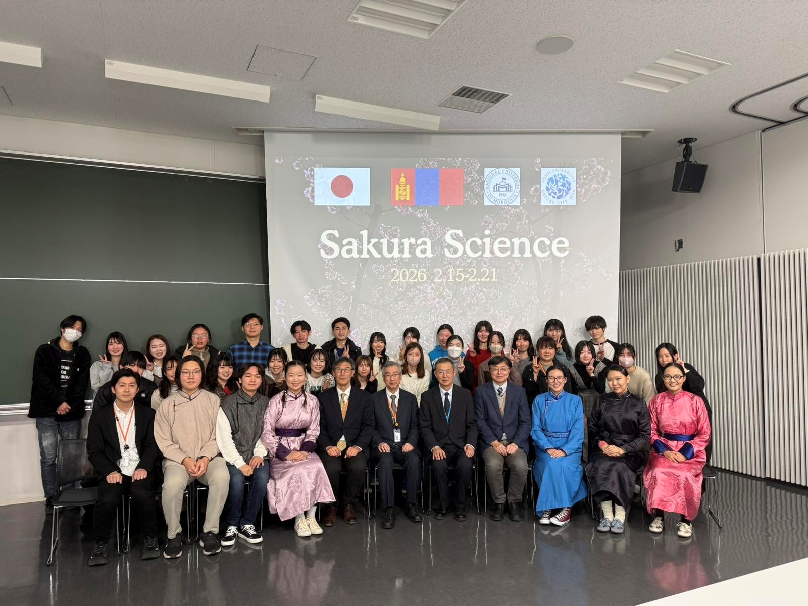 МУИС-ийн 6 оюутан Япон Улсын Шинжлэх ухаан, технологийн агентлагаас хэрэгжүүлдэг Сакура Сайэнс солилцооны хөтөлбөрт (https://ssp.jst.go.jp/en/) хамрагдан, 2026 оны 2 дугаар сарын 15-21-ний хооронд тус улсад зочлоод ирэв. Энэ удаагийн хөтөлбөрийг МУИС-ийн Биоорганик хими-Фармакогнозын лаборатори, Тохо их сургуулийн Микробиологийн лаборатори (https://www.toho-u.ac.jp/phar/labo/biseibutsu.html) хамтран “Байгаль эхийн ивээлийг судлах нь: Байгалийн нэгдлийг хамтран эрж хайх нь” сэдвээр зохион байгууллаа.