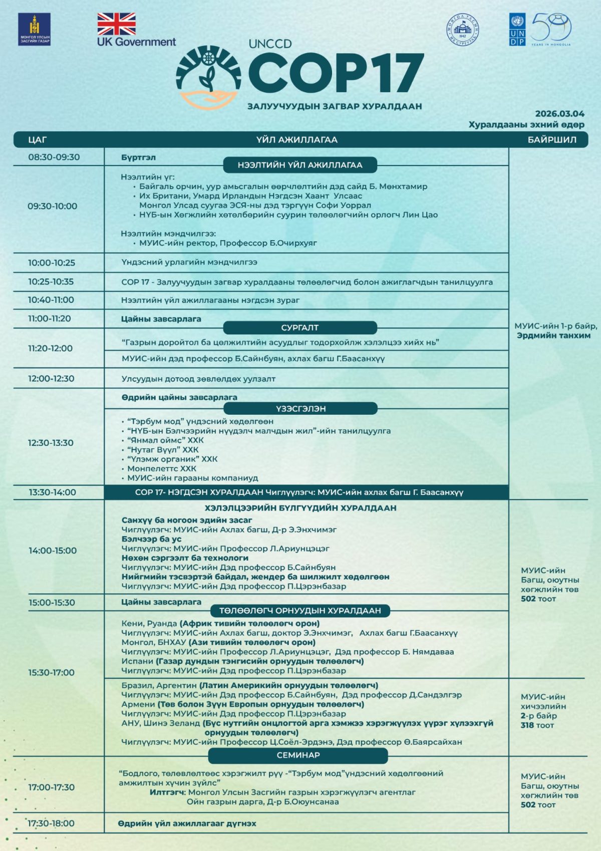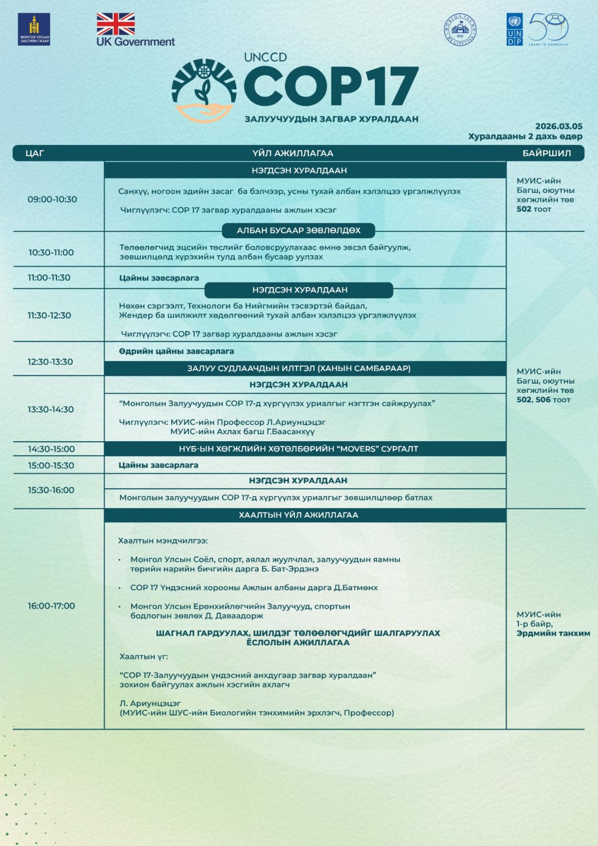 COP17-Залуучуудын загвар хуралдааны хөтөлбөр