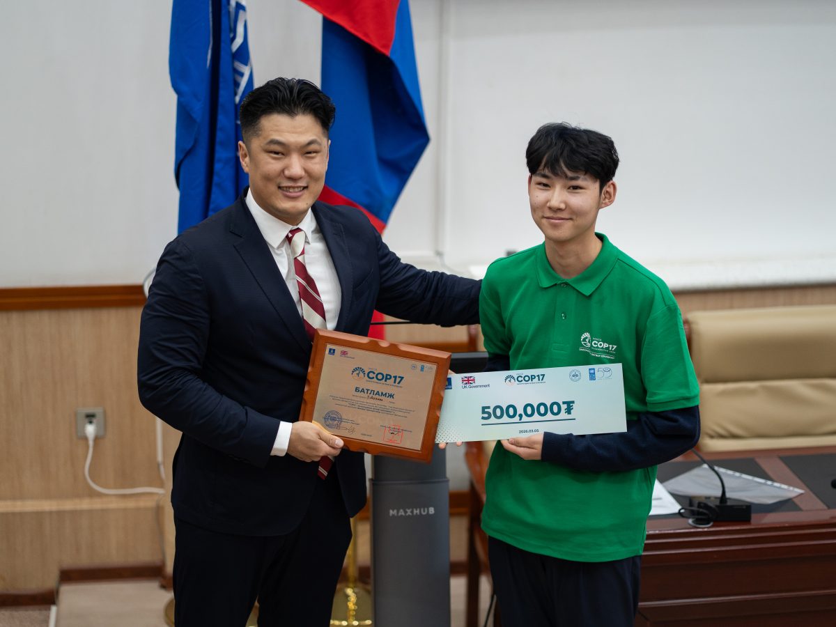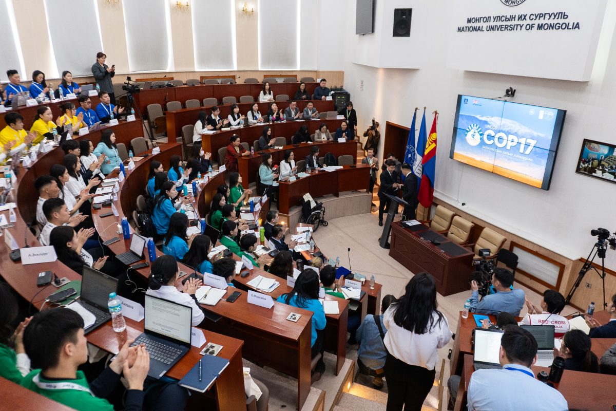Нэгдсэн Үндэстний Байгууллагын Хөгжлийн Хөтөлбөрийн “Уур амьсгалын амлалт-2” төслийн дэмжлэгтэйгээр Монгол Улсын Их Сургууль цөлжилт, газрын доройтлын асуудалд залуу үеийн оролцоог нэмэгдүүлэх, тэдний санал санаачилгыг дэмжих зорилгоор зохион байгуулсан “COP17-Залуучуудын загвар хуралдаан” 2 өдрийн турш үргэлжлэн өнөөдөр /2026.03.05/ хаалтаа хийлээ.