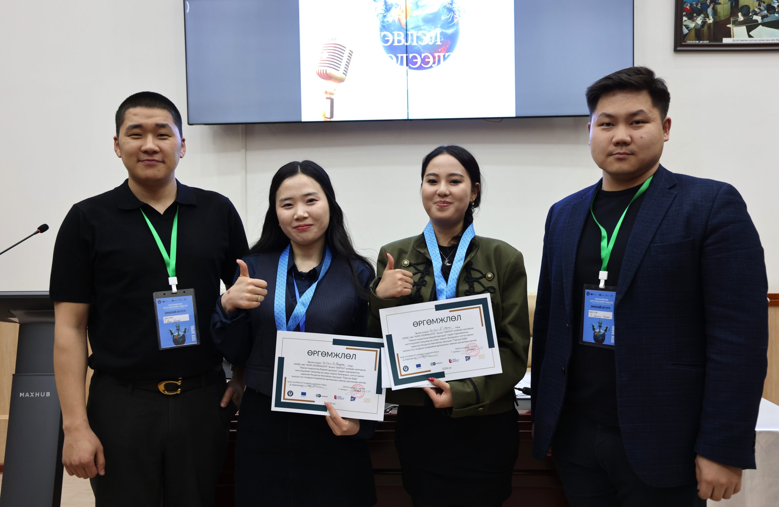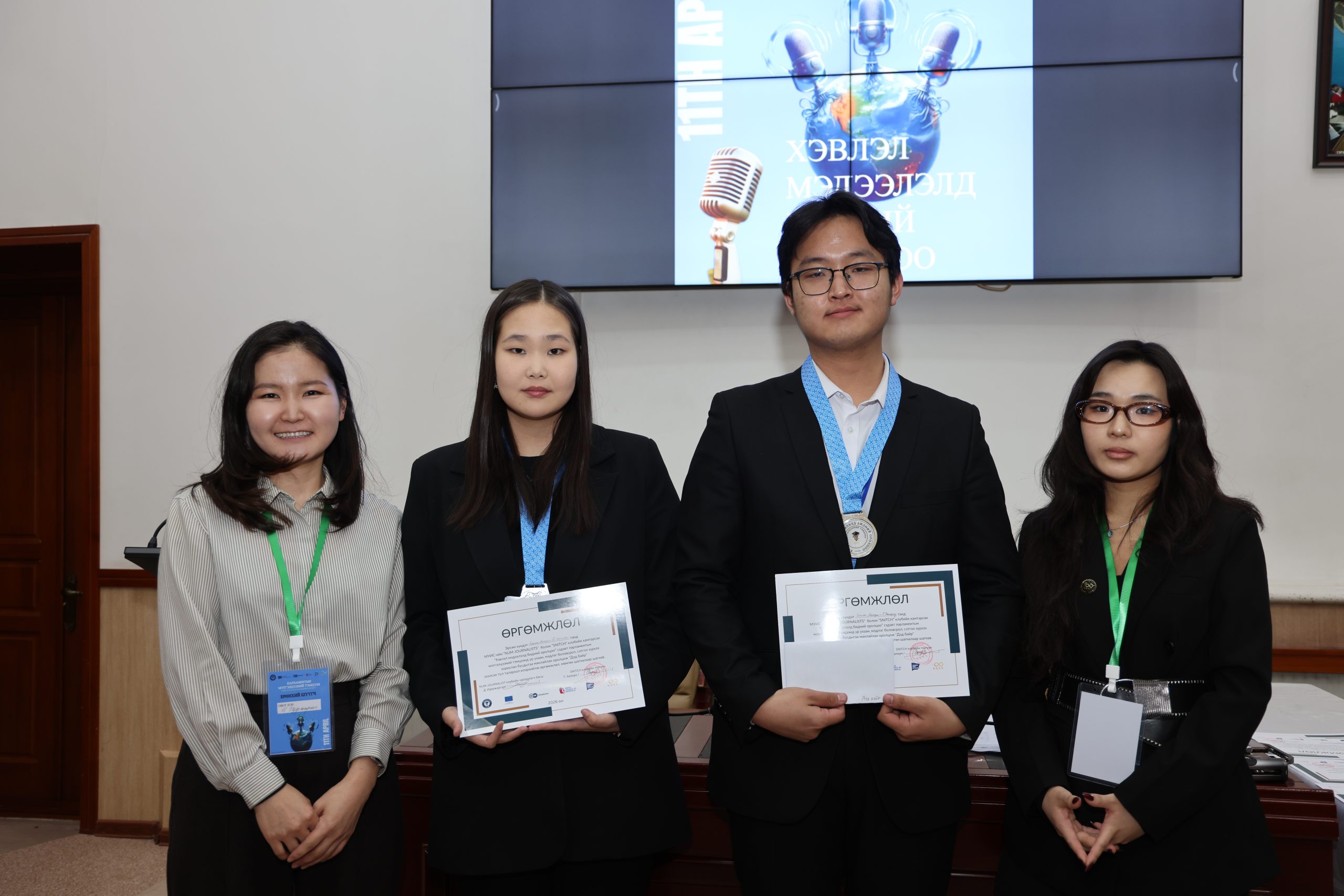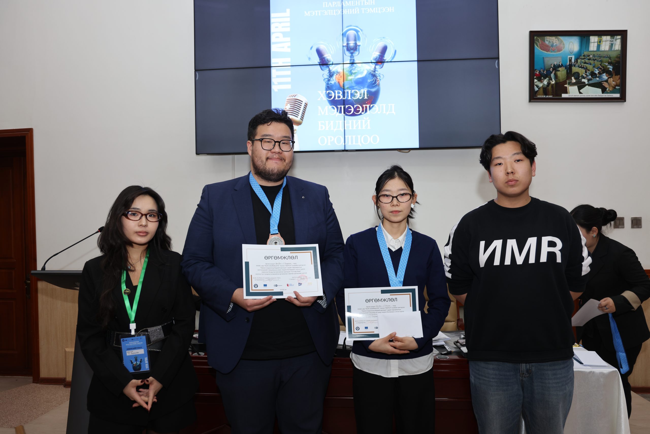 МУИС-ийн Сэтгүүл зүй, олон нийтийн харилцааны тэнхимийн дэргэдэх “NUM Journalists” болон “SNITCH” клуб хамтран “Хэвлэл мэдээлэлд бидний оролцоо” парламентын мэтгэлцээний тэмцээнийг 4-р сарын 11-нд амжилттай зохион байгууллаа.