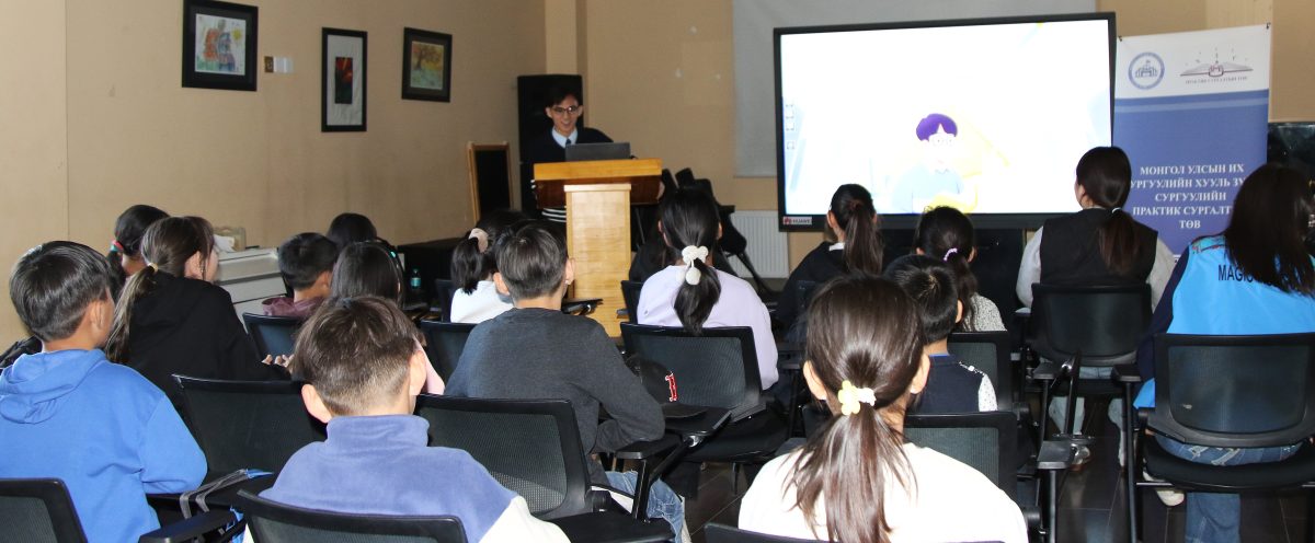 МУИС-ийн Хууль зүйн сургуулийн Практик сургалтын төв болон өмгөөллийн “Монгол Өмгөөлөгч” хууль зүйн фирм, Лантуун Дохио ТББ хамтран “Өсвөр насны хүүхдийн цахим орчны зохистой хэрэглээ” сэдэвт эрх зүйн боловсрол олгох сургалтыг 2026 оны 04 дүгээр сарын 10-ны өдөр зохион байгууллаа.