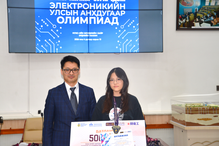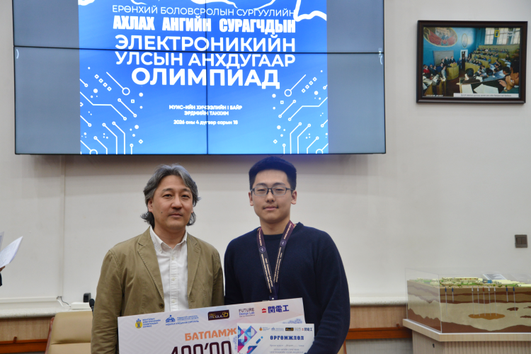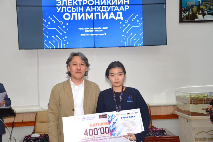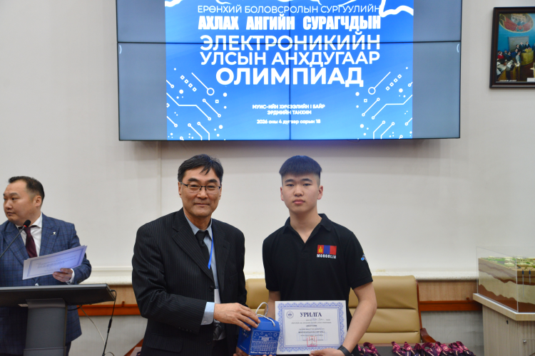 Хувийн дүнгээр 1-11 байр эзэлсэн сурагчдад МУИС, МТЭС-ийн Электроникийн хөтөлбөрт суралцах МУИС-ийн ректор, профессор Б.Очирхуягийн урилгыг гардуулж өглөө.