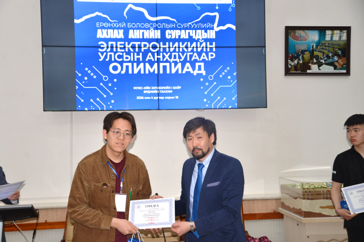 Ерөнхий боловсролын сургуулийн ахлах ангийн Улсын Электроникийн анхдугаар олимпиадыг Mонгол Улсын Их Сургуулийн Мэдээллийн технологи, электроникийн сургууль хоёр үе шаттайгаар амжилттай зохион байгууллаа.